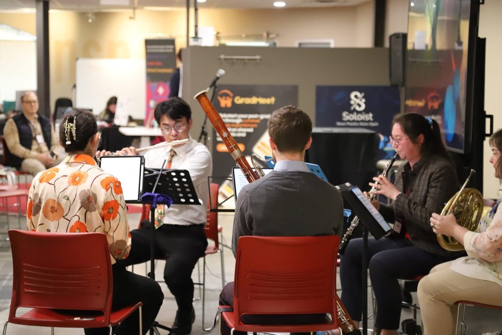 A clear trend among the speakers, whether they were sharing ideas, building businesses, or offering perspectives, was a genuine connection to music. Most were artists themselves, while others were deeply invested in the industry’s future; some of them were IU alumni themselves. Either way, it was clear that everyone in the room shared a common goal: to see the music industry adapt to changes in the tech industry and find ways to thrive in that environment.